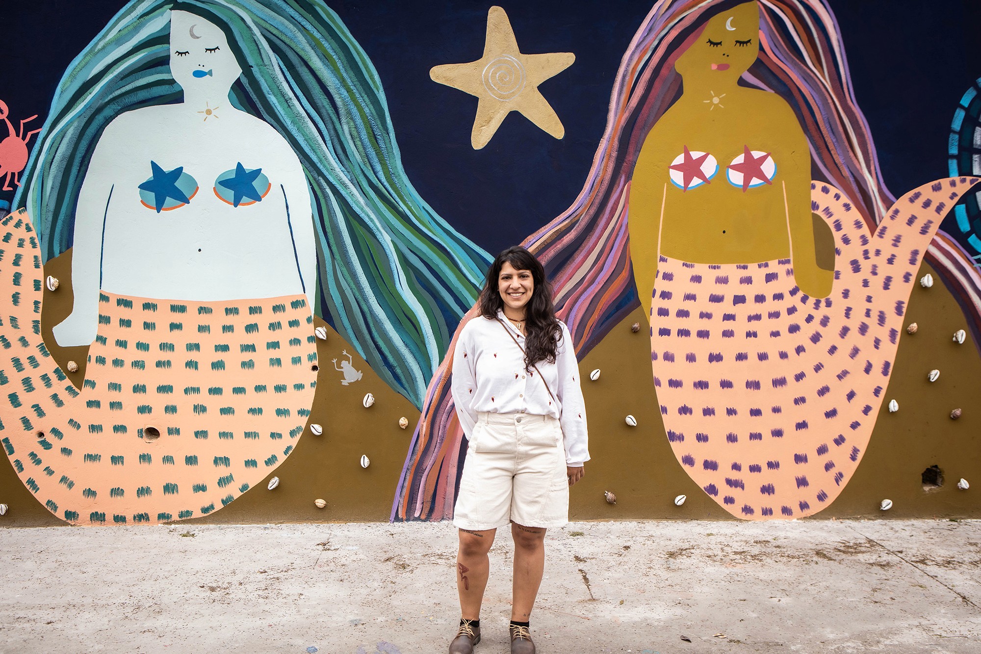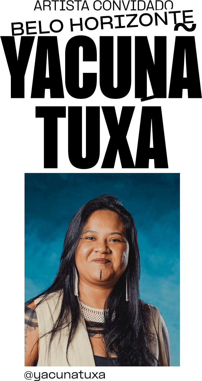 Yacunã (1993, Floresta, PE) é uma artista visual e ativista brasileira originária do Povo Tuxá de Rodelas, no sertão baiano. Sua prática artística é multidisciplinar e abrange ilustração, pintura, muralismo, escrita, escultura e outras experimentações. Sua expressão artística é marcada por trabalhos que capturam a resistência e a organização política das mulheres indígenas na luta por direitos, em defesa da vida e das florestas. As interseções entre raça, gênero e sexualidade são temáticas recorrentes em suas obras.
