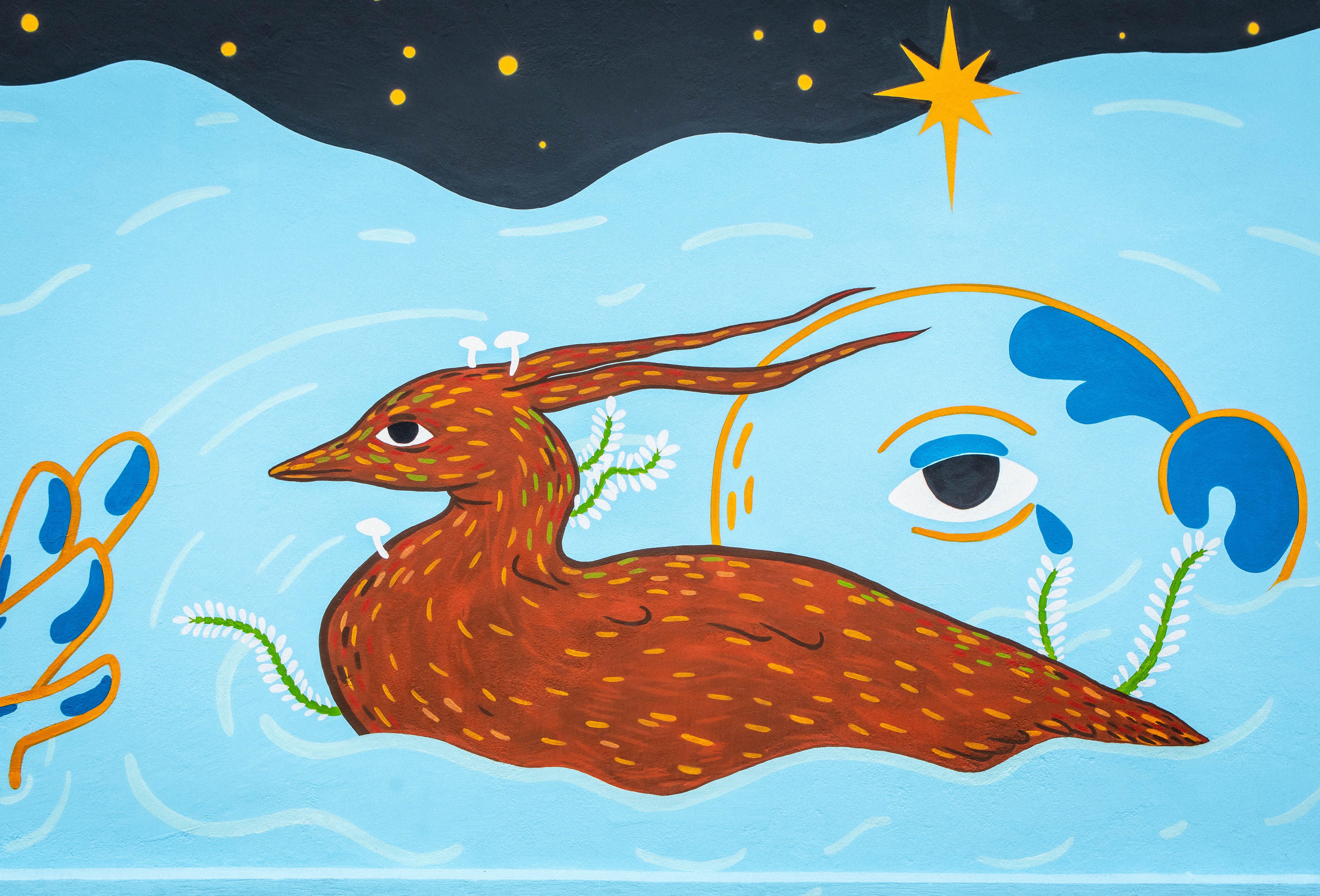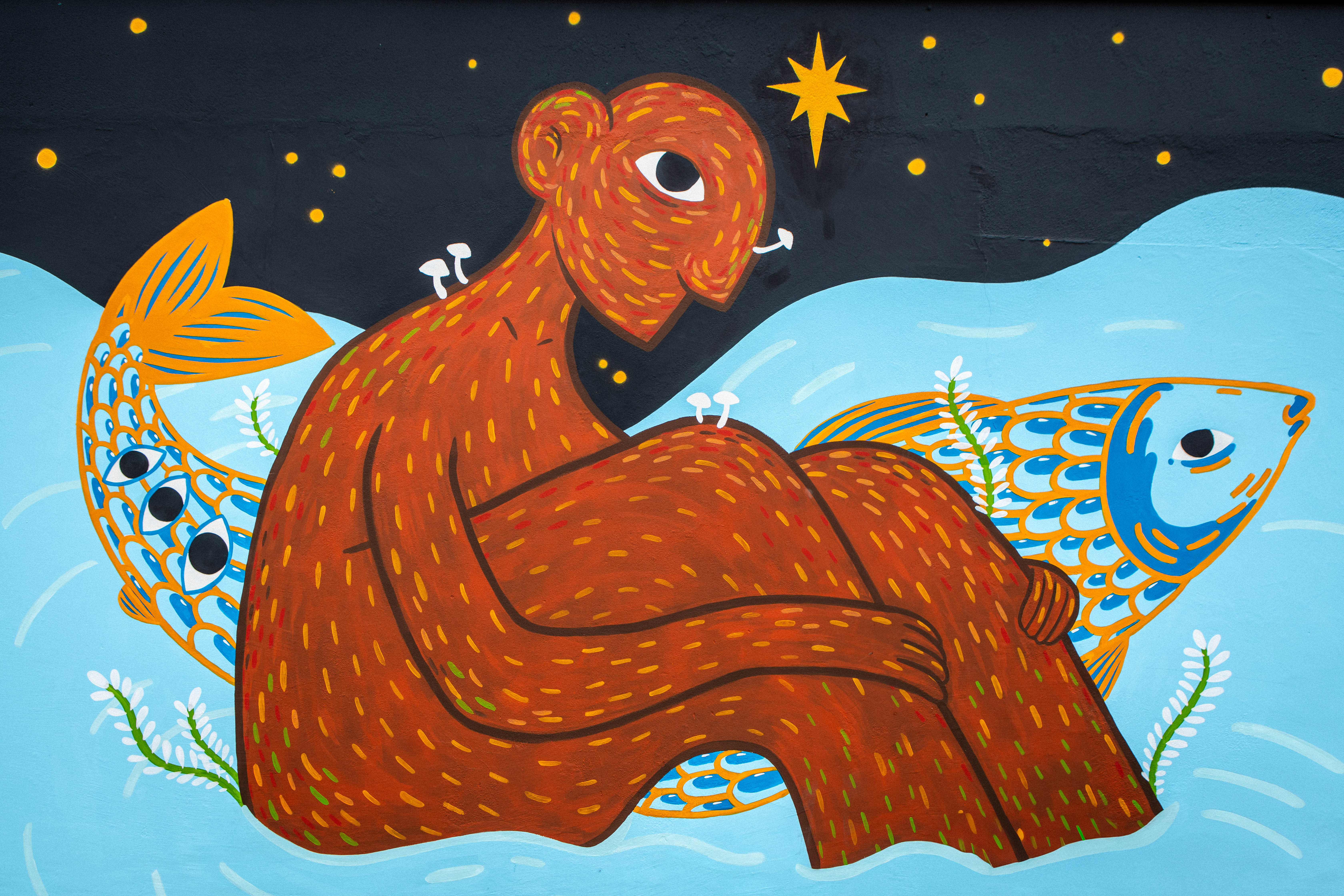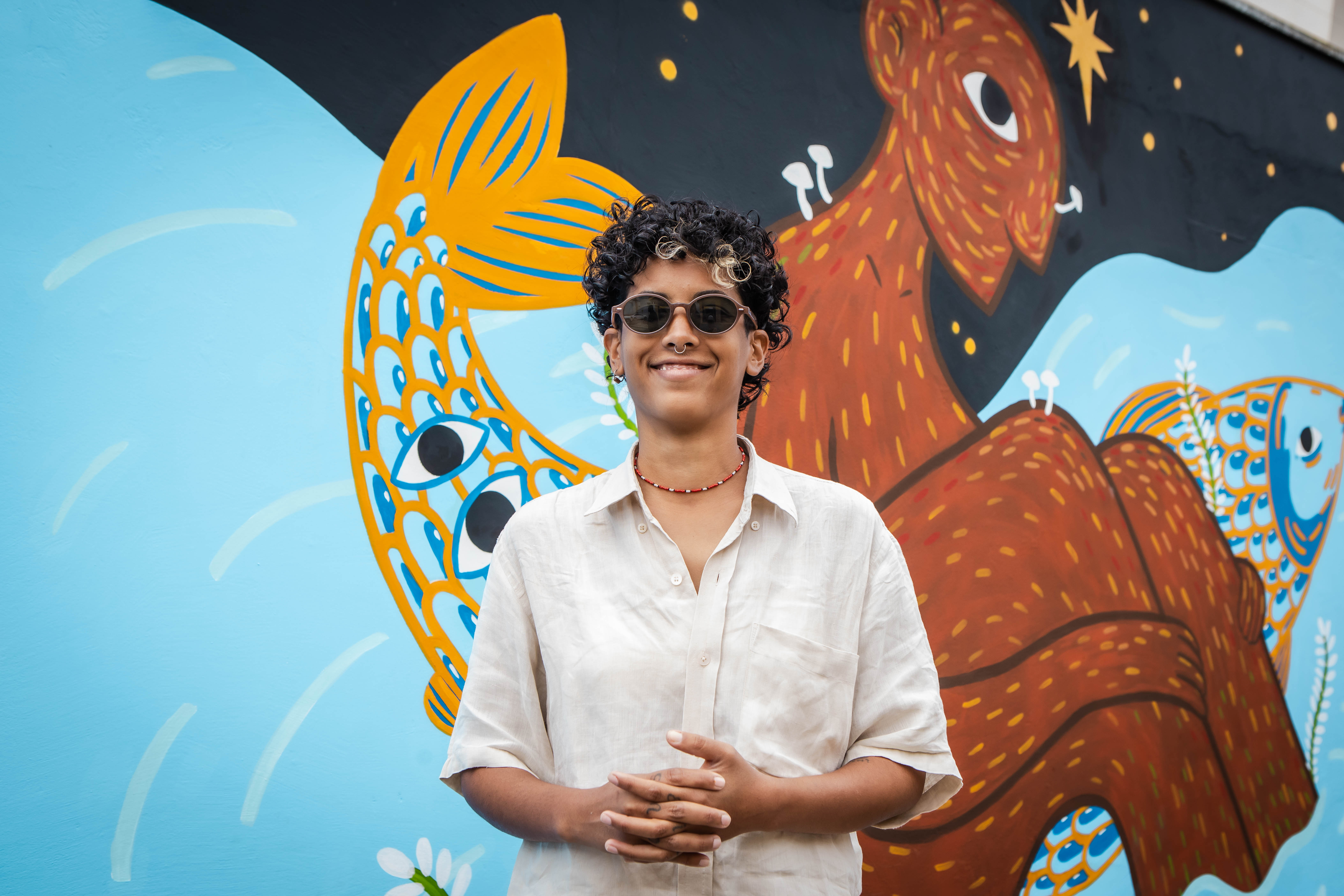 Caio Aguiar, vulgo Bonikta, tem 30 anos, é artista independente, pesquisador e produtor cultural, natural de Ourém, do interior da Amazônia Paraense. Através do universo das Boniktas, o artista constrói narrativas visuais inspiradas no imaginário originário e ribeirinho amazônico, reflexo de suas vivências cotidianas na travessia entre o interior e a cidade. Suas criações transitam entre grafite, muralismo, tatuagem, fotografia e diversas experimentações que combinam linguagens e memórias ancestrais.