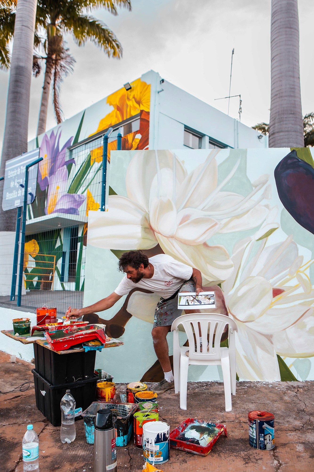 Thiago Mazza (1984, Belo Horizonte, Brasil) é artista visual e muralista, conhecido por suas composições que exploram a flora tropical com riqueza de detalhes e domínio da luz. Com formação em Design Gráfico e autodidata em pintura, iniciou sua trajetória no graffiti em 2010 e hoje é destaque no muralismo contemporâneo brasileiro. Já realizou trabalhos em diversos países da Europa e América Latina, levando sua arte a espaços públicos e festivais internacionais.