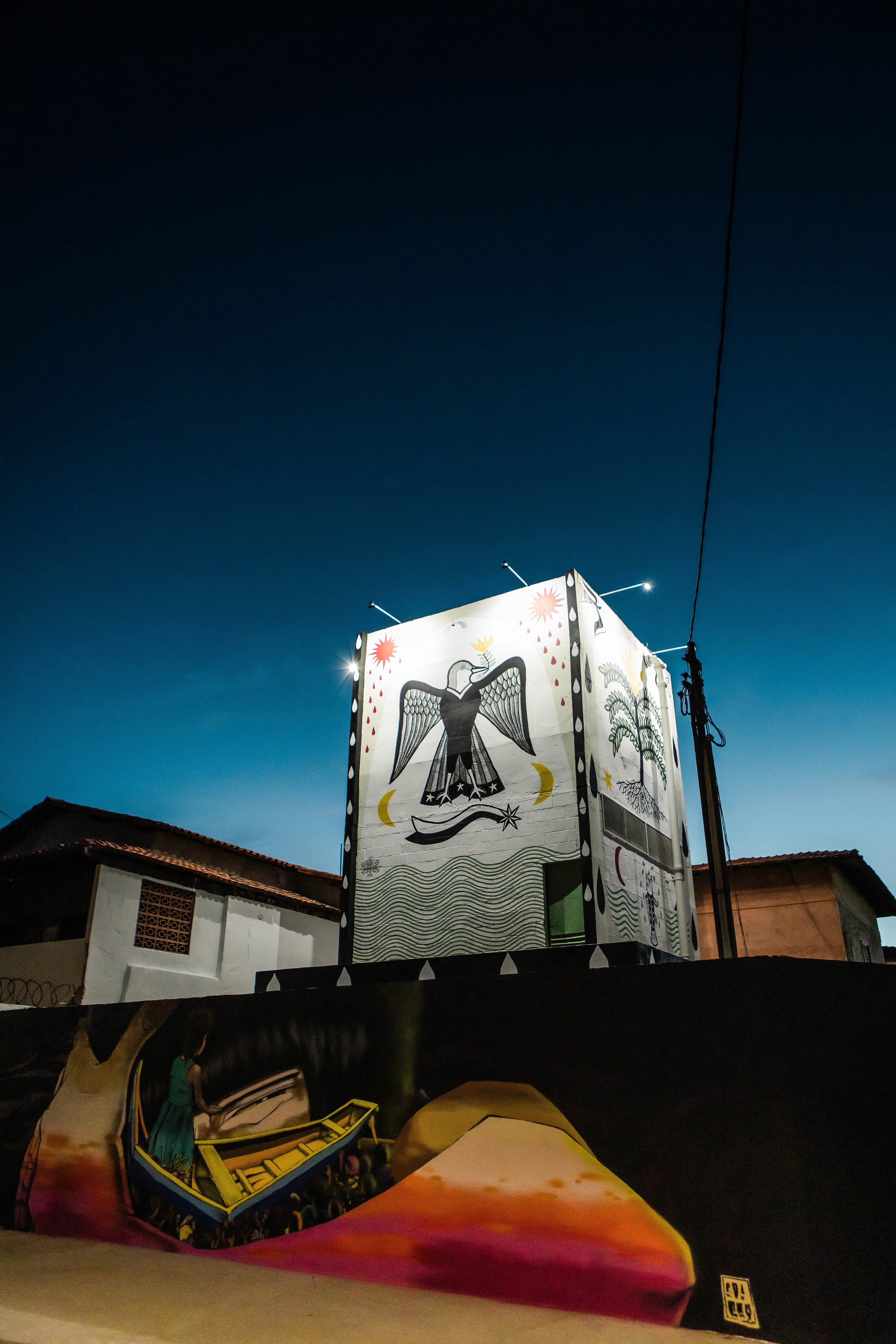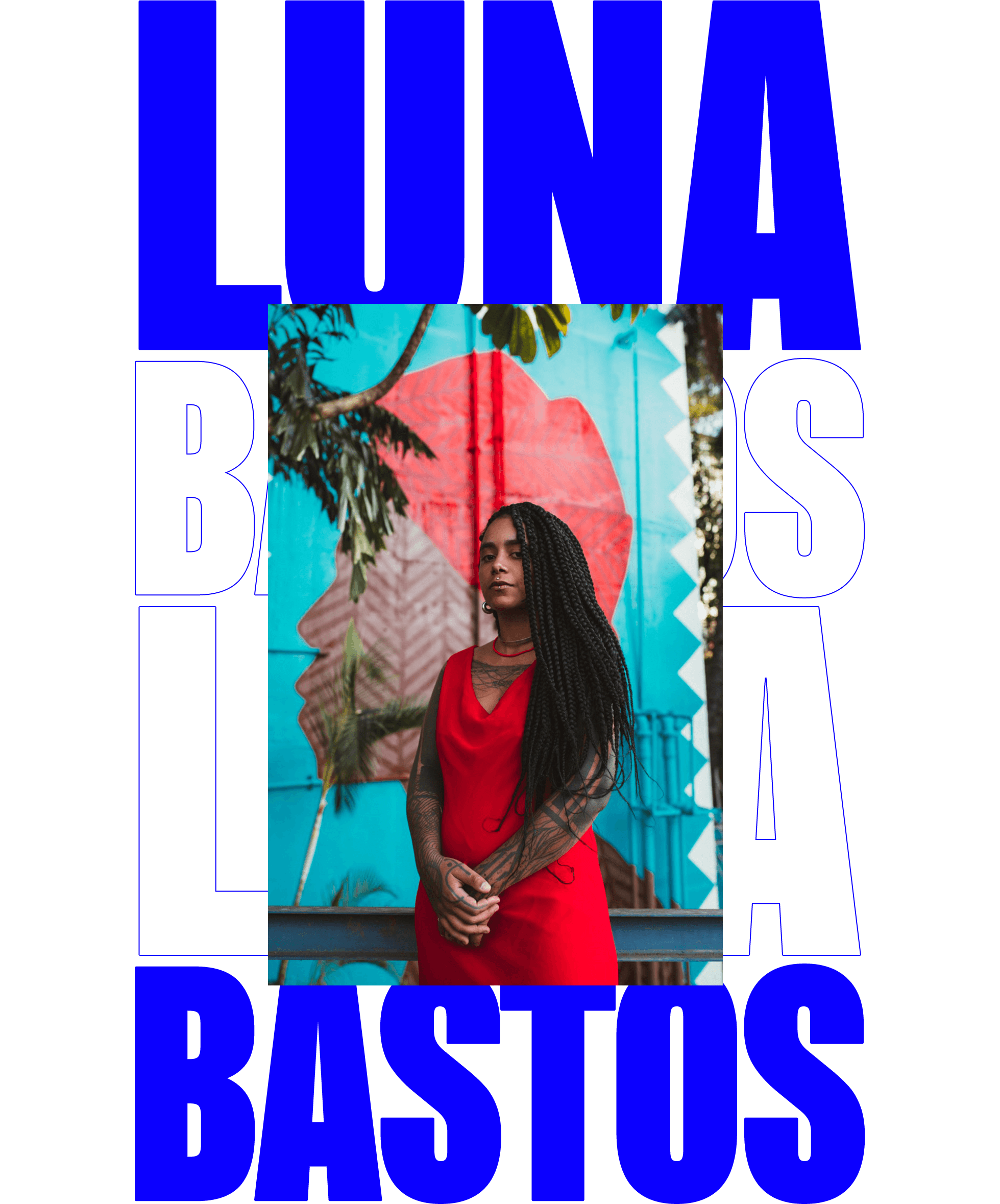 Luna Bastos é artista visual, muralista e tatuadora. Nascida em Teresina, no Piauí, ela trabalha com diferentes técnicas e suportes, como pintura, bordado e escultura. A ancestralidade africana é a guia de seu trabalho artístico e aspectos como identidade, representação e memória estão constantemente representadas em suas obras. Luna já participou de exposições coletivas de instituições como o Museu de Arte do Rio, e o Centro Cultural Banco do Brasil de São Paulo, do Rio de Janeiro e de Belo Horizonte. Ela também já participou de festivais de arte urbana na França, Alemanha, Áustria, Inglaterra e Gana.